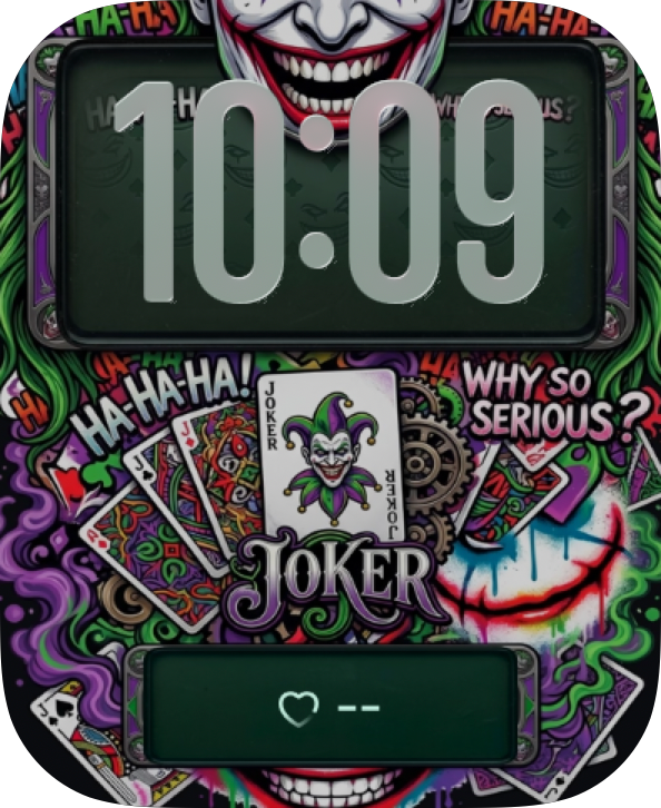 Bring Joker chaos to your Apple Watch with graffiti scribbles, sinister smiles, and wild comic-book mischief.