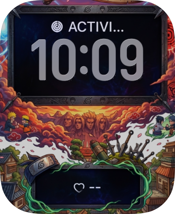 Give your Apple Watch a Naruto anime adventure look with scrolls, jutsu symbols, and shinobi action that feels lifted from a ninja legend.