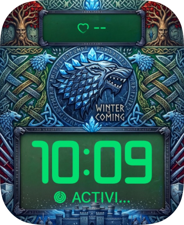 Bring Game of Thrones grandeur to your Apple Watch with house crests, a winter map scene, and fantasy detail inspired by Westeros.