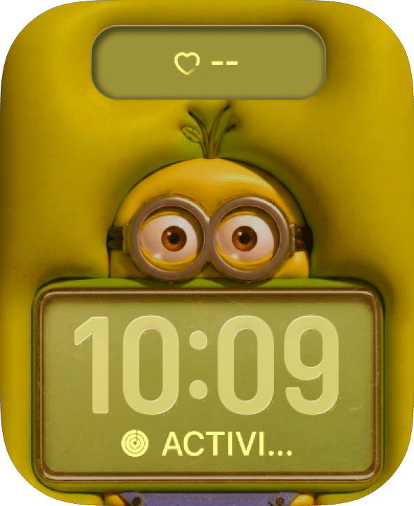 Banana Minion brings a bright yellow cartoon look with banana vibes and bold lime digits to Apple Watch. Minion-inspired art gives this Apple Watch face a playful, instantly recognizable feel. 🍌😄⌚