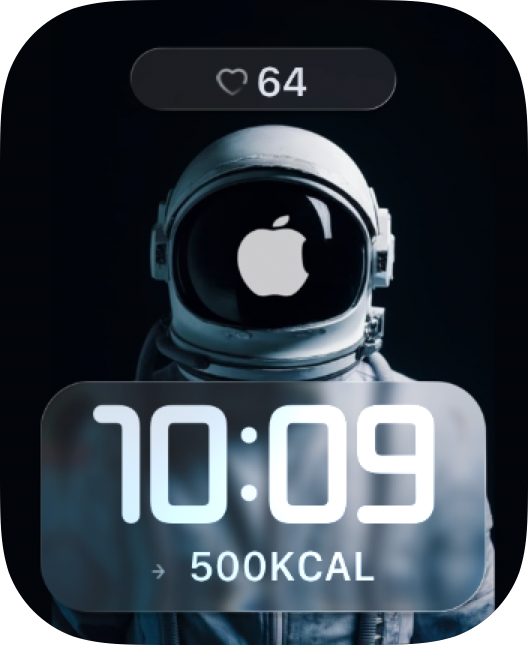 Cosmic Apple Explorer watch face pairs a sleek astronaut portrait with deep space lighting and a glowing Apple reflection for a futuristic mood. It feels clean, cinematic, and ready for orbit 🚀🌌🍎