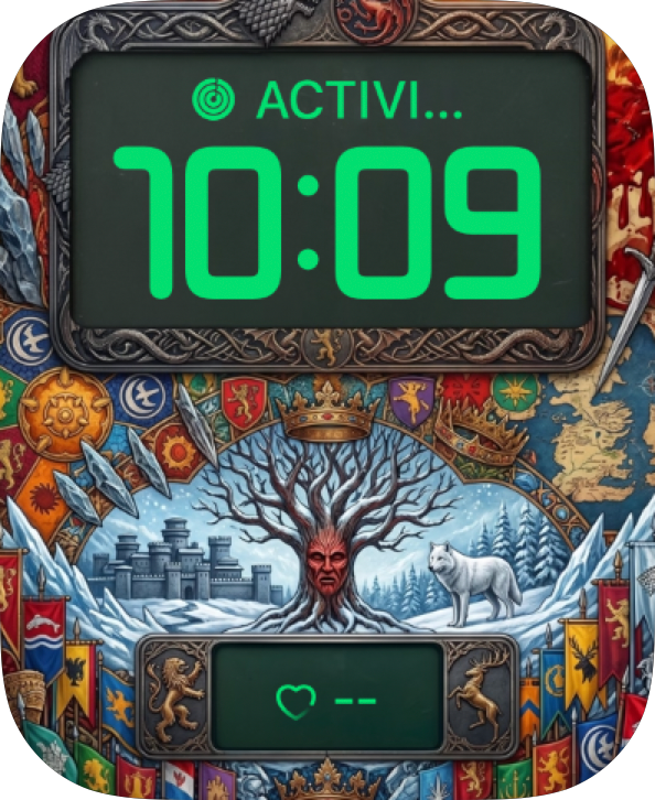 Bring Game of Thrones grandeur to your Apple Watch with house crests, a winter map scene, and fantasy detail inspired by Westeros. 🐺🗡️👑 Game of Thrones Realm feels epic, noble, and perfect for fans of the series.