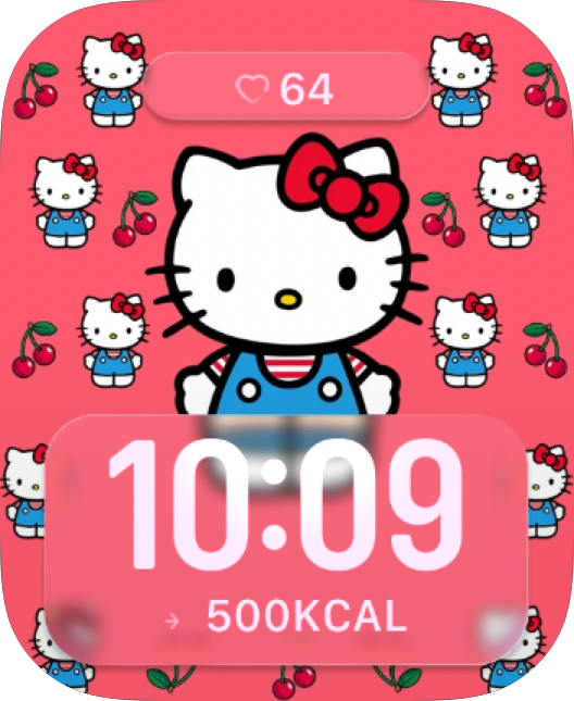 Hello Kitty Cherry Pop watch face pairs bright red tones, playful repeating icons, and classic Sanrio charm for a bold kawaii look. It feels sweet, lively, and instantly recognizable 🎀🍒💗