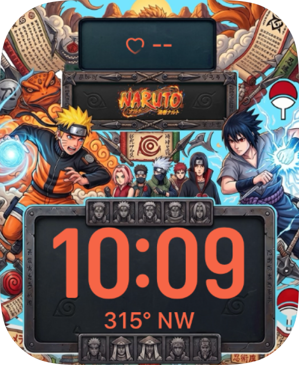 Turn your Apple Watch into a Naruto tribute with Naruto, Sasuke, and the Hidden Leaf cast framed in bold manga-style action. 🍥⚡🦊 Naruto Shinobi Squad is vibrant, nostalgic, and packed with anime energy.