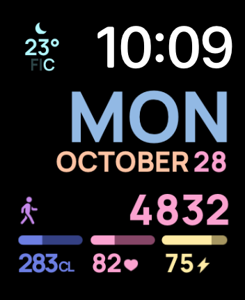 - Pastel Pace Duo: a minimal Apple Watch face from the Minimalist collection with a clean, simple layout.