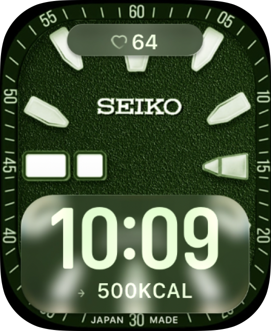 Seiko Diver Moss watch face brings moss-green depth, bold markers, and clean tool-watch character to your Apple Watch. The bold layout keeps the time readable while the artwork gives your everyday setup a distinctive custom look.
