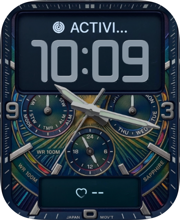 Add layered teal sport-luxury style to your Apple Watch with multiple subdials, bold numerals, and white analog hands. 🟦⌚✨ Teal Multi Dial feels technical, polished, and energetic.